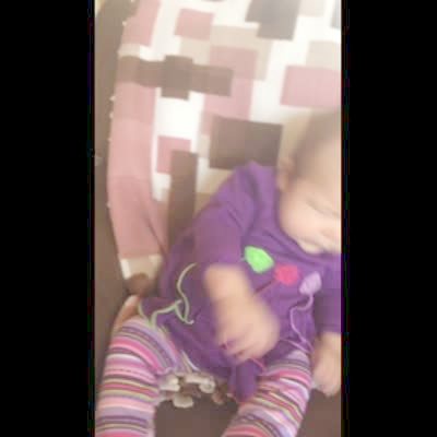 Dad asks tot girl how her mom sleeps & girl makes a snoring noise while sitting in mom's lap. Cute.