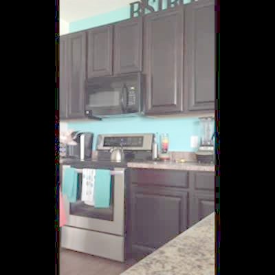 A teen boy dances in his kitchen and hits a counter knocking himself over. Action at :23.