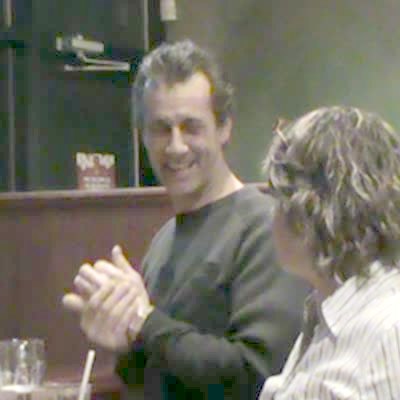 A man opens a bottle of champagne and the cork shoots and breaks the ceiling light.