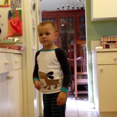"Kitchen Cabinet Kid" Children hide in cabinets to reopen drawers as their little brother closes them.