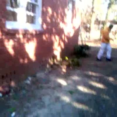 (RS) - Blindfolded teen girl tries to hit pi�ata with broom, keeps missing, hits wall