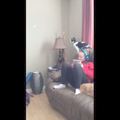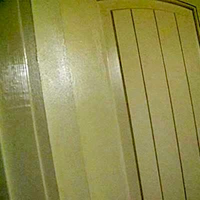 ***Submitted twice - clip 667260*** A man is wearing a veil and a ski mask at home and waits to scare his daughter when she comes home from work. He jumps out at her and she screams and falls backwards. Practical joke.