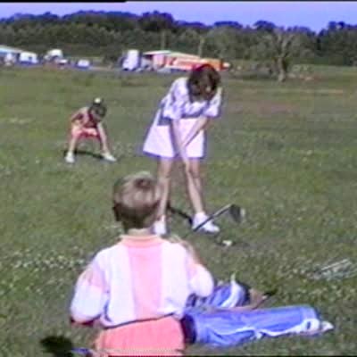 Woman gets stuck in dishwasher (Runner). Date on screen 1986.