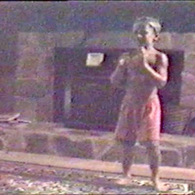 Boy sings in the shower and is scared when he sees the camera. Short tail.