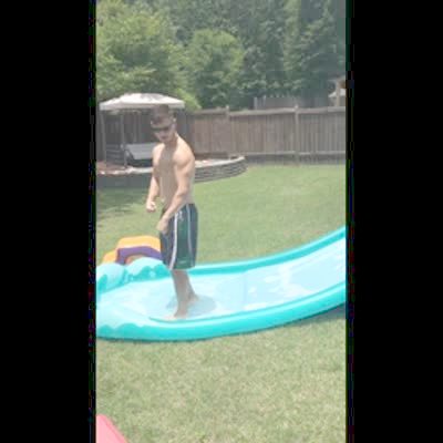 During baptism, man is dipped in water and the man helping falls in with him. Double baptism.