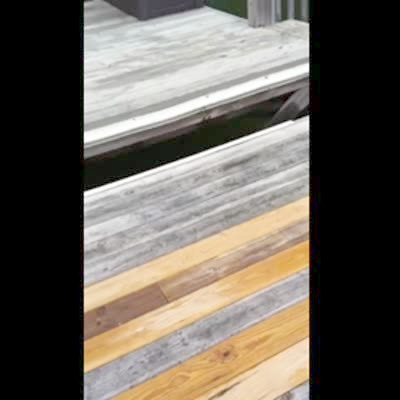 A man uses the shadow of a rolled up hose to trick his dog into pulling weeds in the backyard.