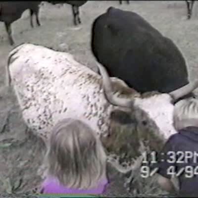 Dad and Grandpa / senior man scare young girl with huge black spider (joke), then on another girl. Great screams of terror / horror