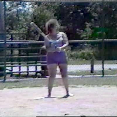 AA;World Series. Baseball fall down. Woman hits ball & falls on way to 1st base.
