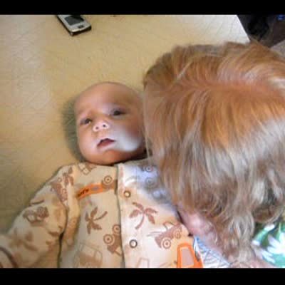 Halloween, pumpkin carving: Tot boy unexpectedly eats insides of pumpkin, makes face then vomits back into pumpkin, Great clip!