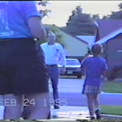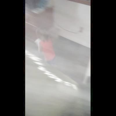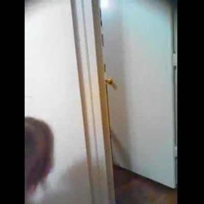 A man walks into a bedroom where he says he smells baby powder and it looks like it is snowing with all of the baby powder a tot girl is playing with.