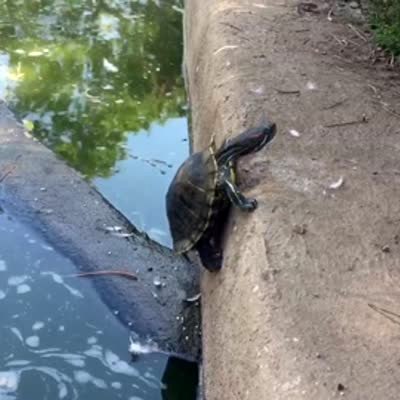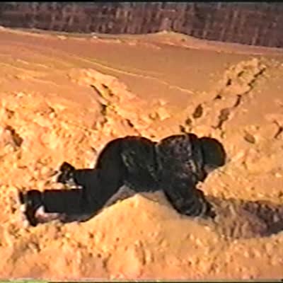 Tot boy is covered in mud. He slides down slide and lands face first in puddle. His face is completely covered in mud and he freaks out.