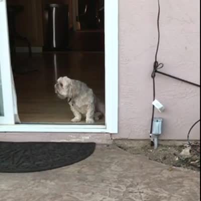 A woman explains that her dog likes to stick her nose in everything and then asks if it wants her nail polish remover. She holds a cotton ball with nail polish remover on it in front of the dog in the driveway and the dog makes an upset face and pushes the cotton ball away with its paw.