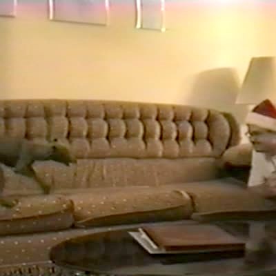 "Slipper Slobberer" Man gets fuzzy slippers for Christmas and puts them on. Dog attacks them and man screams.