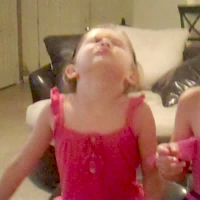 Tot girls in ballerina outfits attempt the cookie eating challenge. Make faces until a cookie goes from your forehead to your mouth without using your hands.
