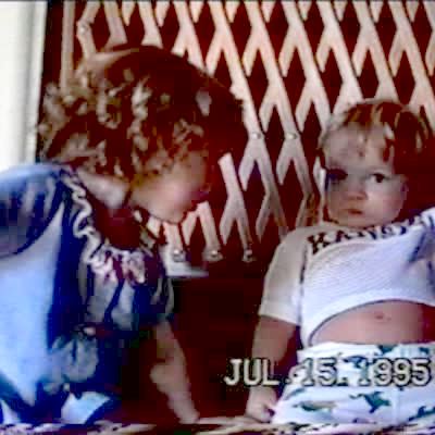 Girl tries to sing Rudolph the Red Nosed Reindeer in paper mask but gets interrupted by her sister. They fight & pinch, girl tells sister they aren't friends anymore. Sibling rivalry.