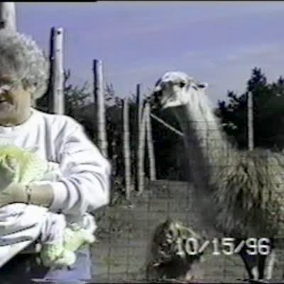 "Llama Spits On Grandma" Llama spits on grandma holding baby . Senior