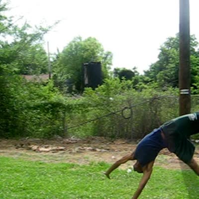 Man does gymnastics / acrobatics and ends up flipping into a trashcan.