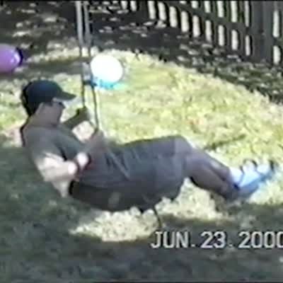 Teen boy screams like a girl in spinning tree swing after it's released.