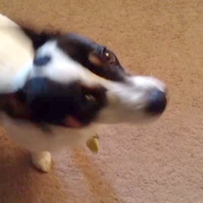 When a girl asks a terrier dog if it did something wrong it repeatedly shakes its head "no".