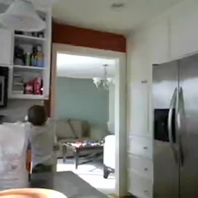 Dad's new invention is a slide on a staircase, so tot can slide down to come to dinner