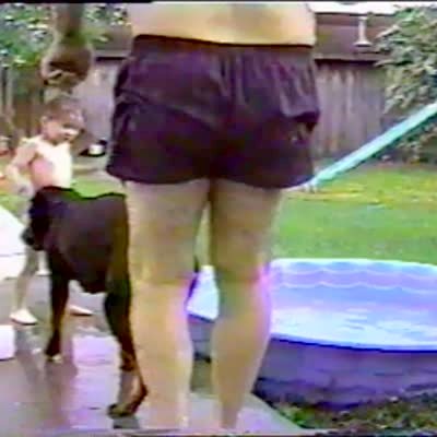 Girl with sparkler falls backward into kiddie pool