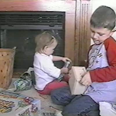 Young boy gets very scared by Christmas gift. He yells that it is not funny and cries.