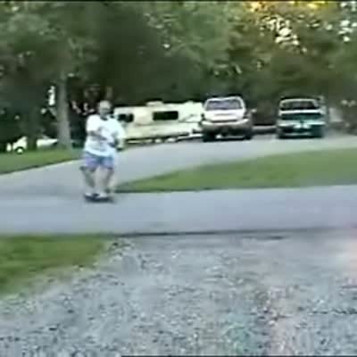 Man makes baking soda and vinegar bomb, it explodes in his hand on the sidewalk. Bonehead.