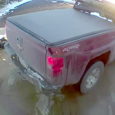 A man walks to a truck and falls on ice. Security Camera Footage.