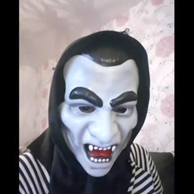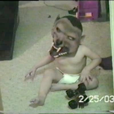 A mom wears a scary vampire costume mask. She tries to scare her tot girl daughter, but the tot laughs. Then she hits her mom in the face, and her mom laughs.