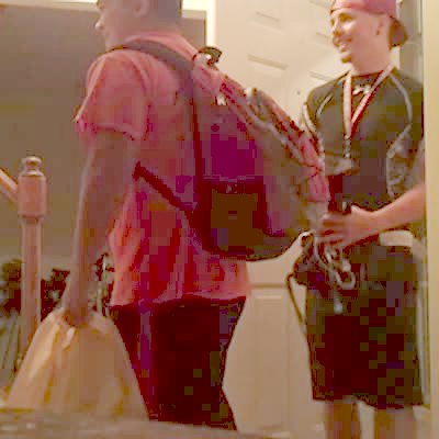 "Cainsaw Massacre" Chainsaw masked man wakes up sleeping boys who watched "Texas Chainsaw Massacre" and slept with lights on the night before. Scares them. Halloween. Practical joke.