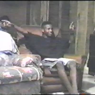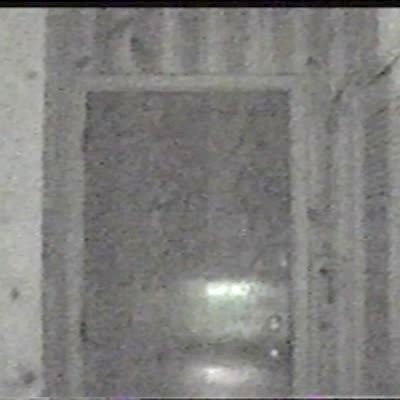 Two teen boys and a teen girl walk into a house. A man jumps out from a dark room wearing a Halloween mask, scaring one of the boys. He loudly screams. Short tails.