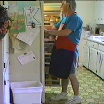 Grandpa / senior man pulls off refrigerator door (this may be staged)