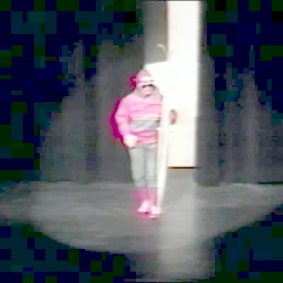 Woman are modeling clothes/ fashion show. Three woman walk down the run way at once. Board raises up when model steps on it causing other model to slip and fall. Trip. Show continues