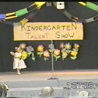 Kindergarten Talent show. Young girl comes out dressed as a fairy with wings and nun chucks. She waves them around and then leaves the stage. Karate