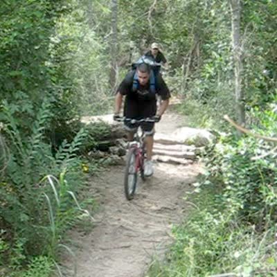 Man falls off his bike riding through the woods. Might be staged. Music rights not cleared.