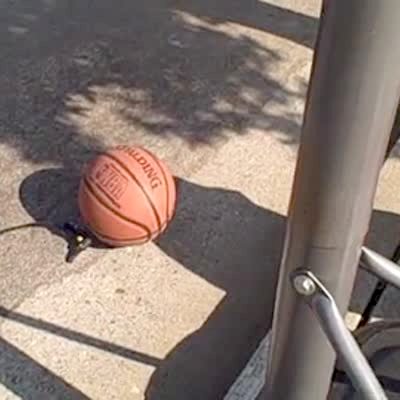 2 teen boys pump up a basketball and it explodes. E-mailed submitter asking for more footage.