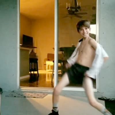 A teen girl dances indoors while a woman pops in and out of a closet door behind her, then comes out to join her. They take turns running into the closet when a senior woman dances across the floor as well. At 2:03:00 the senior woman dances across again and sits down in a chair just as the teen girl pulls the chair away and the senior woman falls backwards and hits her head.