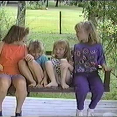 4 young girls on a porch swing fall when it breaks. Hard fall. (1323, 1602M, 1905)