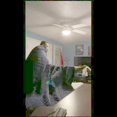A man in a bedroom uses a blanket, a stick and shoe to pretend that he floats above the bed. His brother calls their parents into the room and his dad and mom walk in and freak out when they see their son in the air and the two boys laugh and their dad gets mad.
