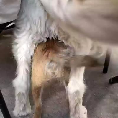 A woman tries to save a puppy dog out of a pool, then she falls in. Security footage.
