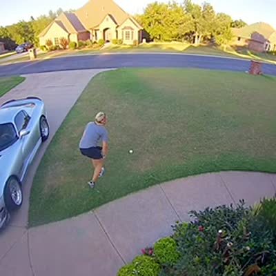 "Didn't Dent Dad's Dream Car" A tot boy remembers that there is a security camera above the garage after he throws a baseball and it hits a vehicle. A woman and the boy, both, examine to see the damage when the boy looks up at the camera and says, "Hey dad, did you get that on camera? It didn't hit there, I'm sorry!" Security footage.