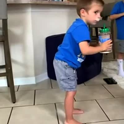 A tot girl tries to say "Watermelon in a bowl" but she mispronounces it and gets tongue tied in the kitchen.