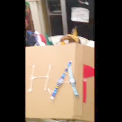 A mother shows that her kids have dyed celery in cups of food coloring in the yard, then asks the family's Bernese Mountain dog what she thinks of the project. The dog comes over, and her mouth and tongue are blue.