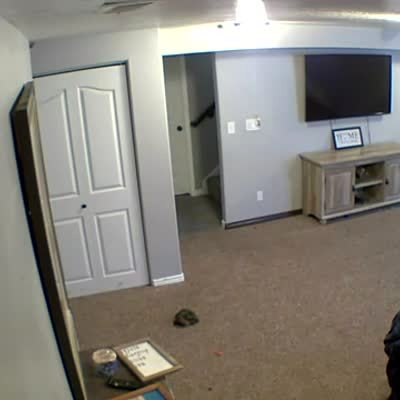 "Bed Bath and Bow-wow" The camera woman asks a black lab dog if it wants a bath. The dog crawls underneath a bed. When the woman asks the dog if it wants to go for a walk, it jumps out from under the bed, excited to go for a walk. As the woman says bath and walk over and over again, the dog keeps crawling under the bed and jumping out over and over.