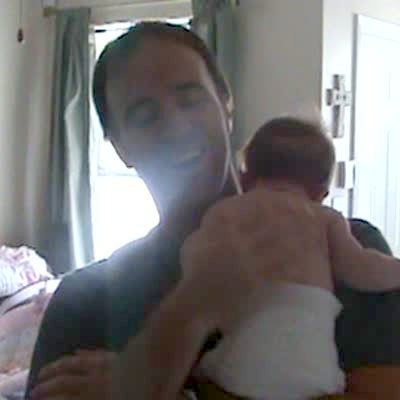 Dad holds baby girl, kisses her, she starts bawling. He calms her down, kisses her again, she cries again.