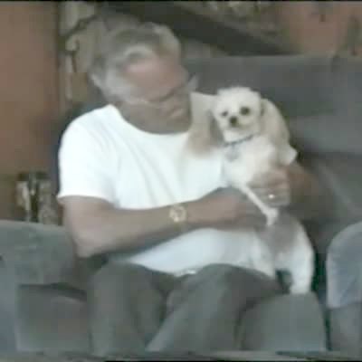 "Fleas Tease" Small dog attacks man when he says dog has fleas, then dog calms down when man says the dog doesn't have fleas. Silly pet tricks.