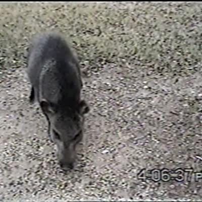 Man behind camera gets too close to wild pig eating. Pig is calm until man gets very close & calls it "gorgeous." Pig gets mad.
