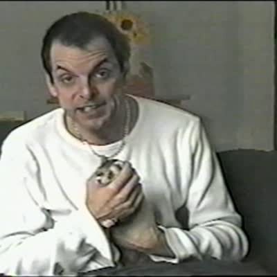 Man holding a ferret and says, "as you can see this is a very tame ferret." Then it bites him on the face. Surprise Animals