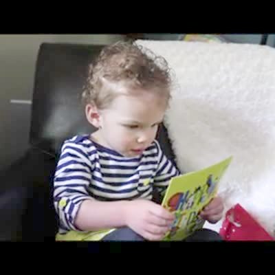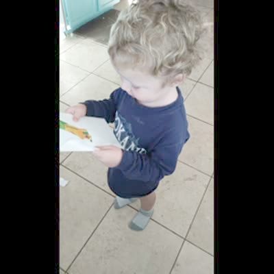 A tot boy laughs over and over when his mom shows him a flash card with a donkey on it. He does not laugh when she gives him other cards, just the donkey.