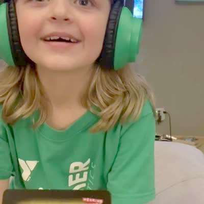 A young girl plays a game with her mother in the house, and tries to guess a phrase while she wears noise-canceling earphones. She repeatedly says "I only see private parts" instead of "I only eat breakfast bars".